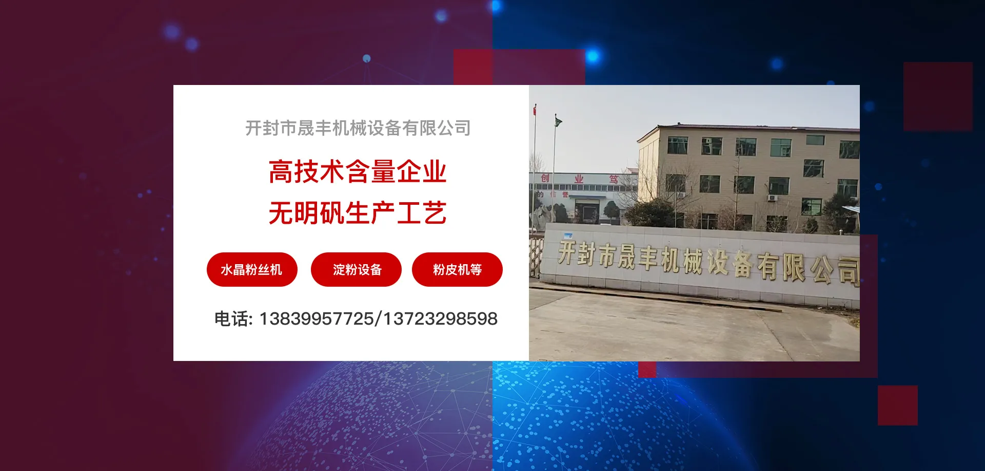 开封市晟丰机械设备有限公司是以研究、生产水晶粉丝机、全自动热干面机、粉皮机、淀粉设备为主的企业,具有多年水晶粉丝设备的生产经验。公司占地面积25亩、拥有员工58人,其中职称9人,有15名安装人员**负责安装与调试。 我公司所生产水晶粉丝等各种设备,免费为客户作厂房平面布置设计,市场分析,可行性研究报告等售前服务。设备自调试结束之日起一年内保修,终身服务,并可与公司同步升级设备,长期供应设备上的各种配件(收取成本费)等售后服务。并对老设备有偿进行升级改造。 公司始终以‘人无我有,人...